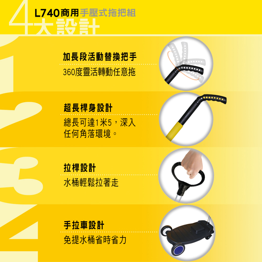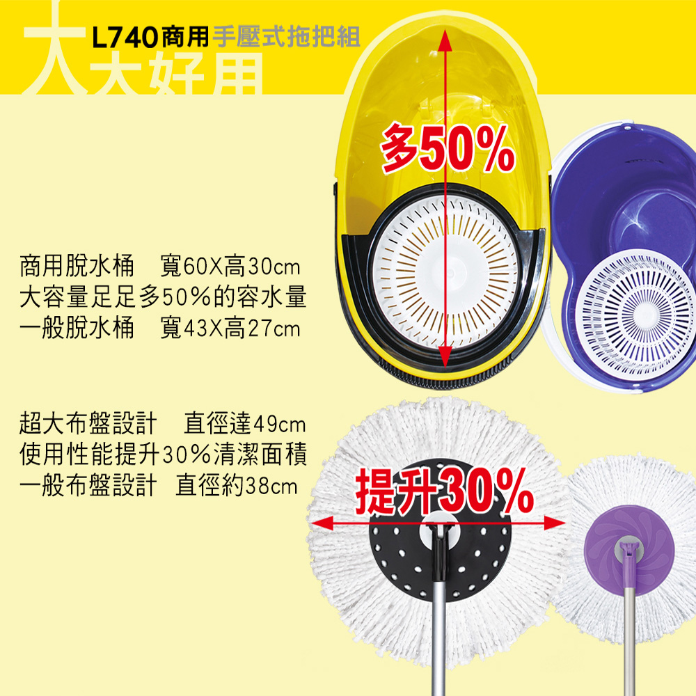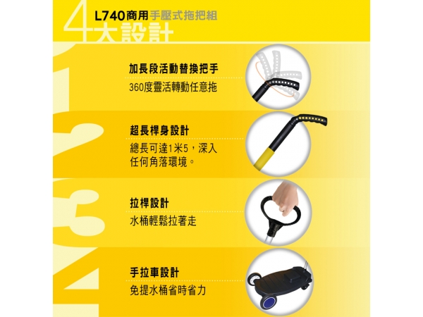 好神拖L740商用拖把組(1桶1拖2布1手拉車)