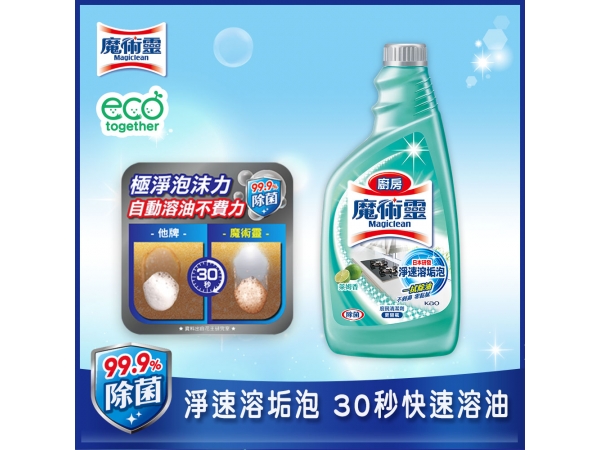 1. 日本研發 淨速溶垢泡:滲透、瓦解、溶出油污,一次完成。快速滲透油汙,徹底瓦解頑垢,噴後只要3~5分鐘,廚房的各種油汙,都可輕鬆抹淨不費力