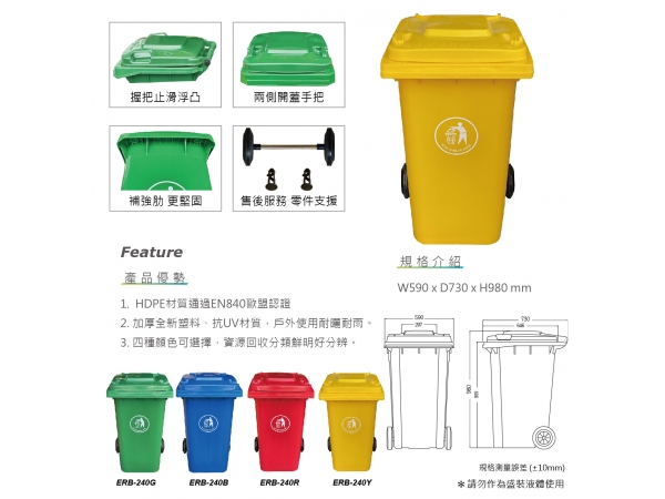 二輪腳踏垃圾桶 240L